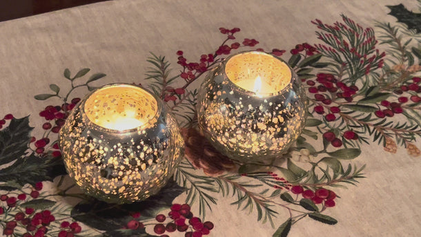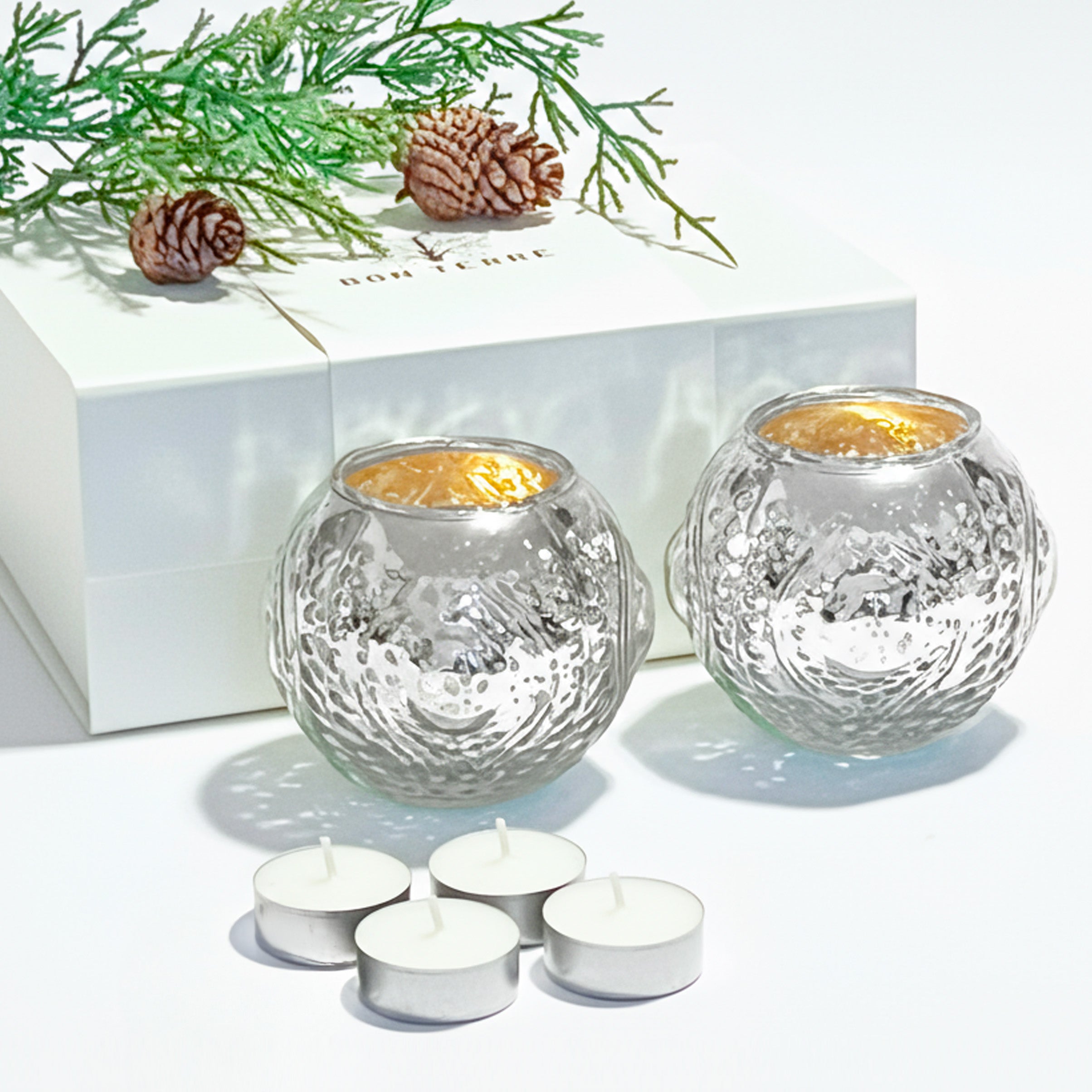Vintage Chic Silver & Gold Mercury Glass Tea Light & Votive Holder Gift Set — Available with Holly Berry and Christmas Tree Fragrances