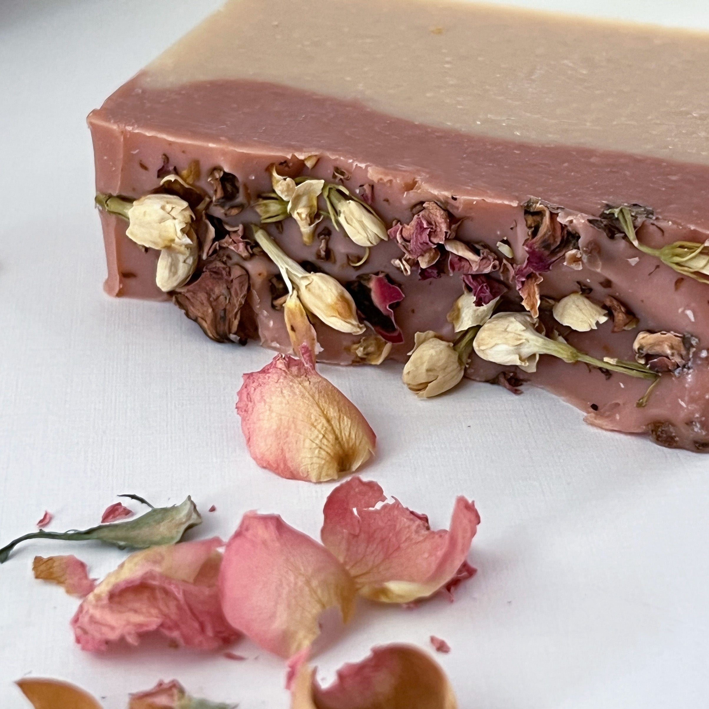 - Stunningly hand-crafted in small batches exclusively for Bon Terre® featuring Organic Rose and Jasmine buds and a layer of pink clay for added nourishment and beauty.