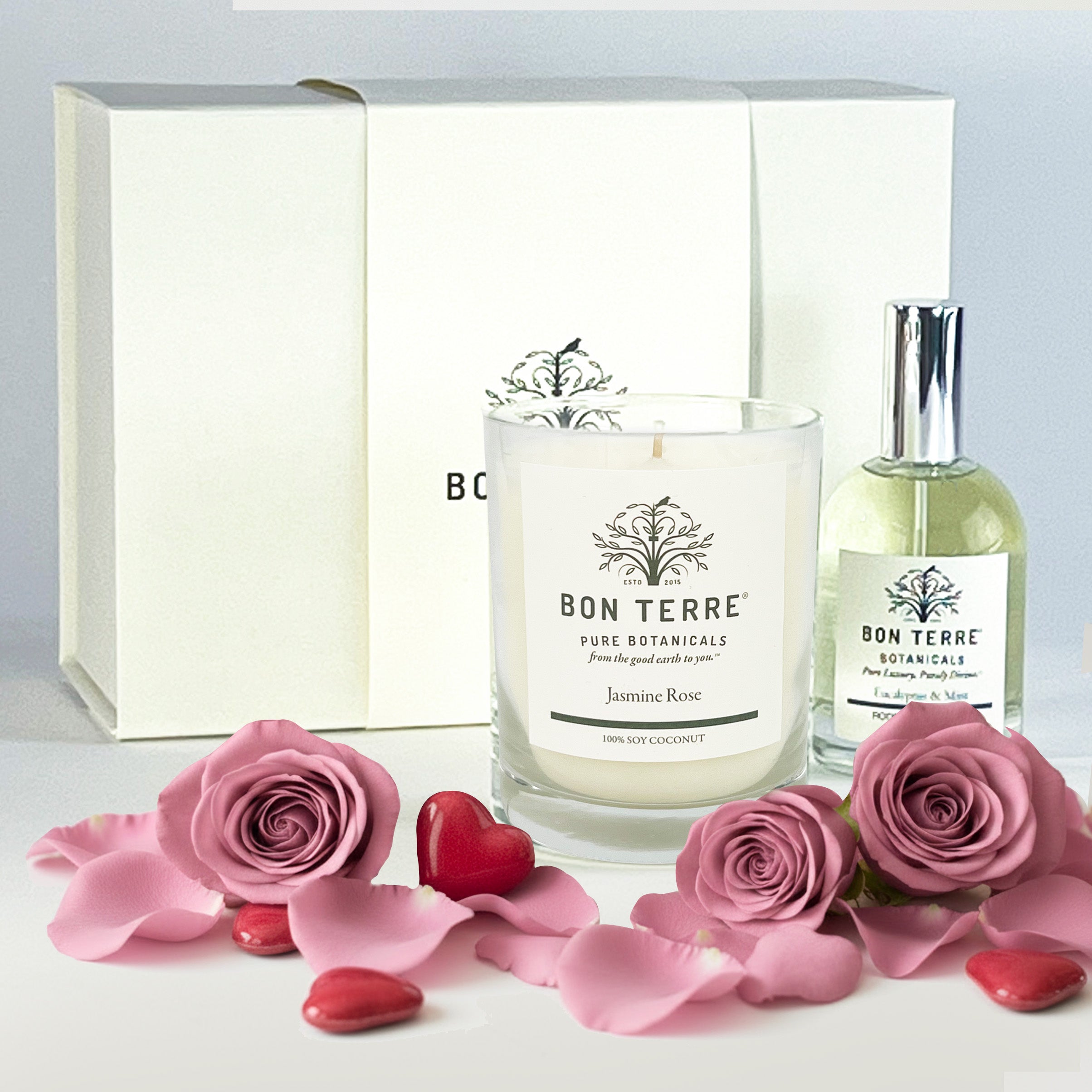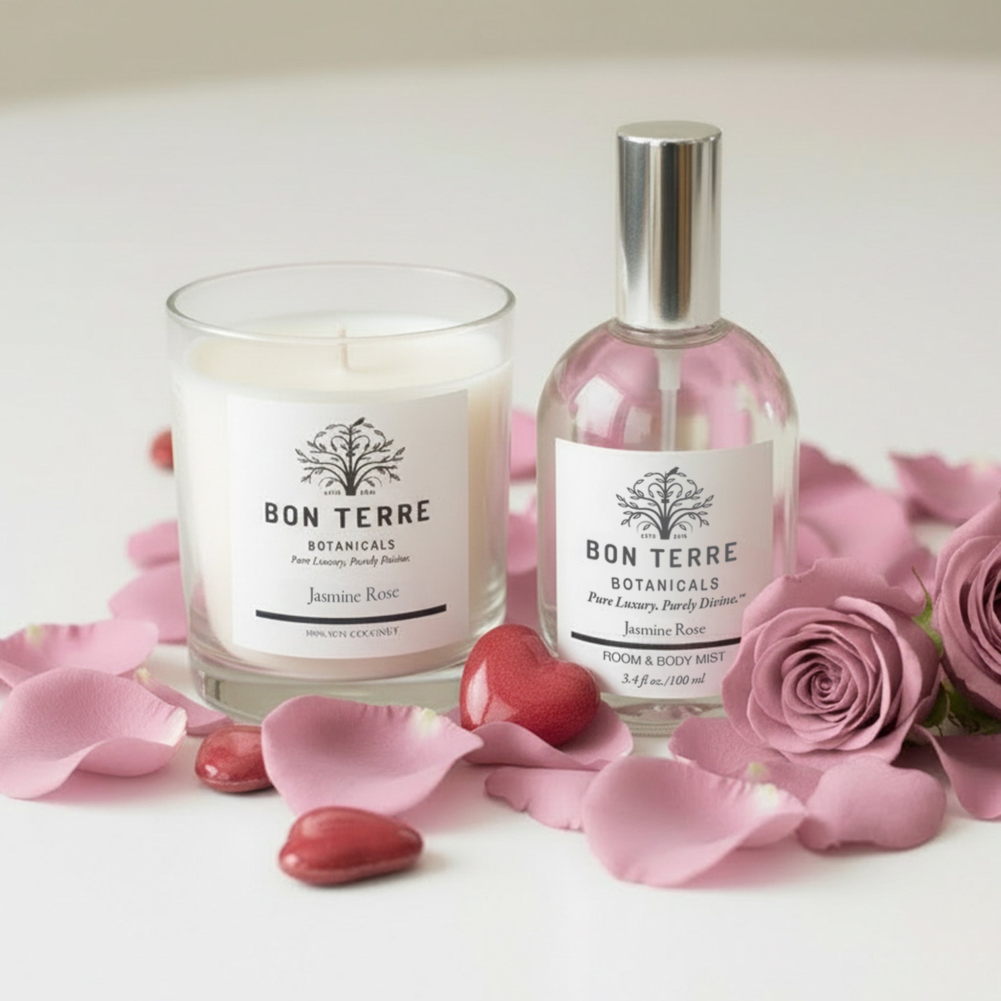 - Our 13.5 oz Jasmine Rose candle, hand-poured with our exclusive formulation of Pure Jasmine and Pure Rose Essential Oils blended with natural Fragrance Oil in100% Vegan Soy Coconut Wax.