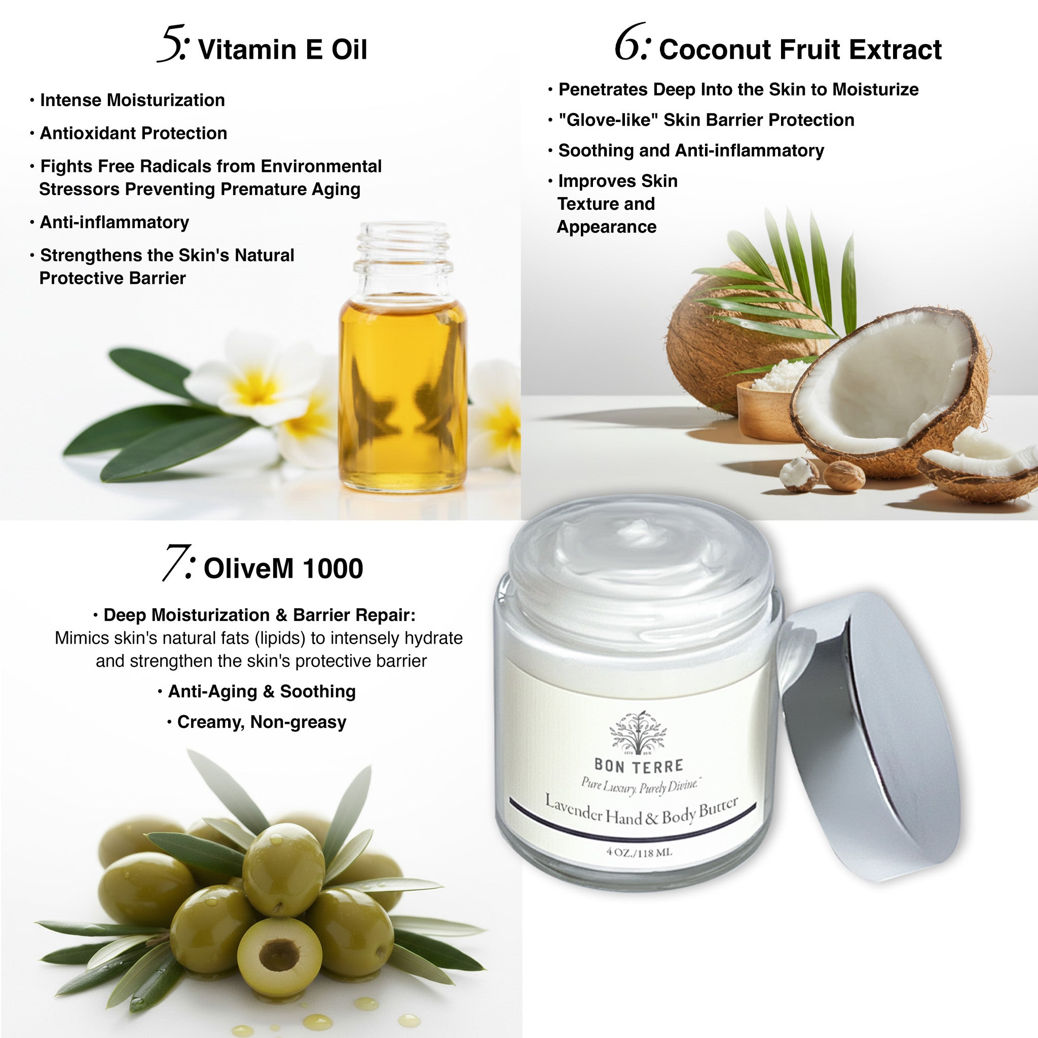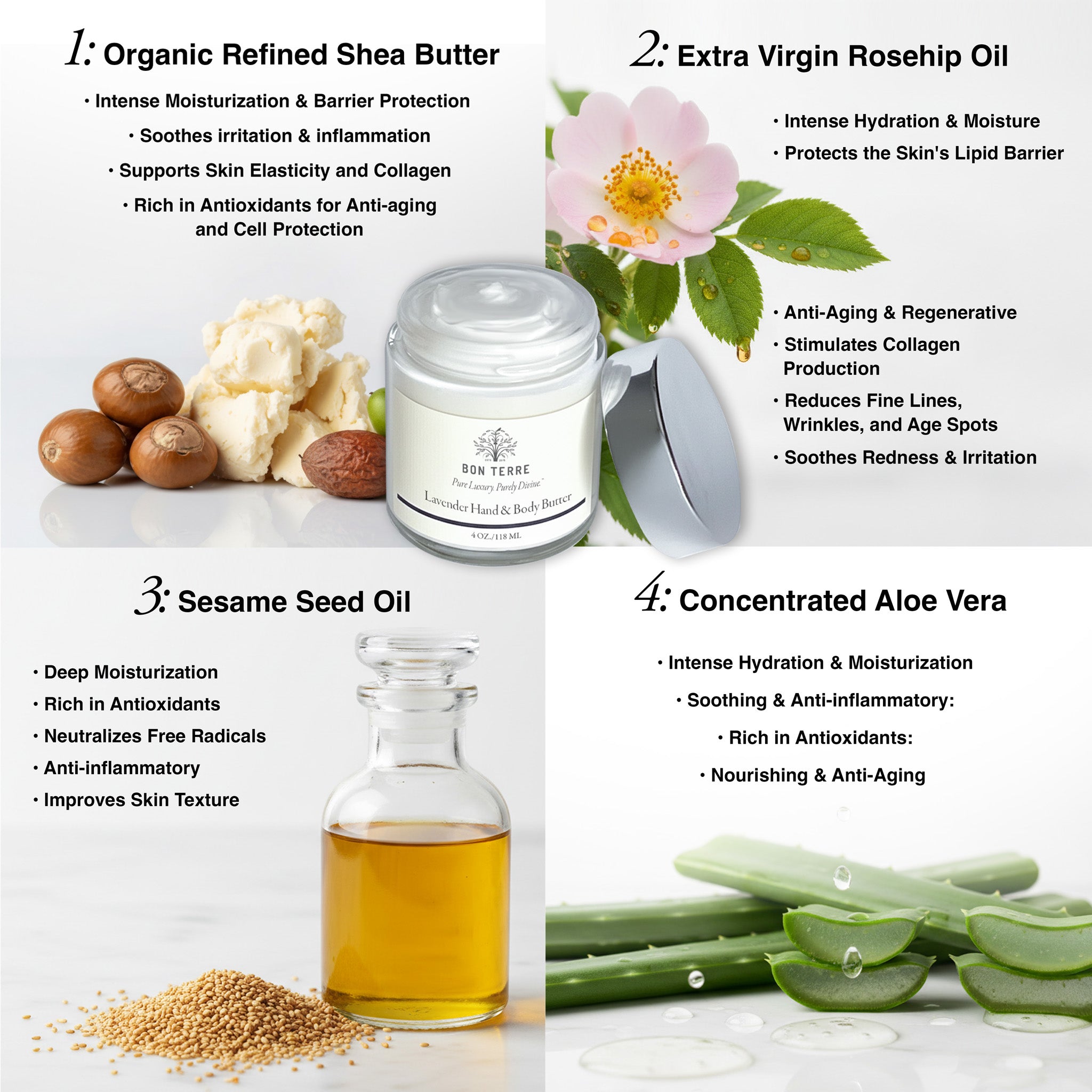 - Organic Refined Shea Butter — a rich moisturizing oil