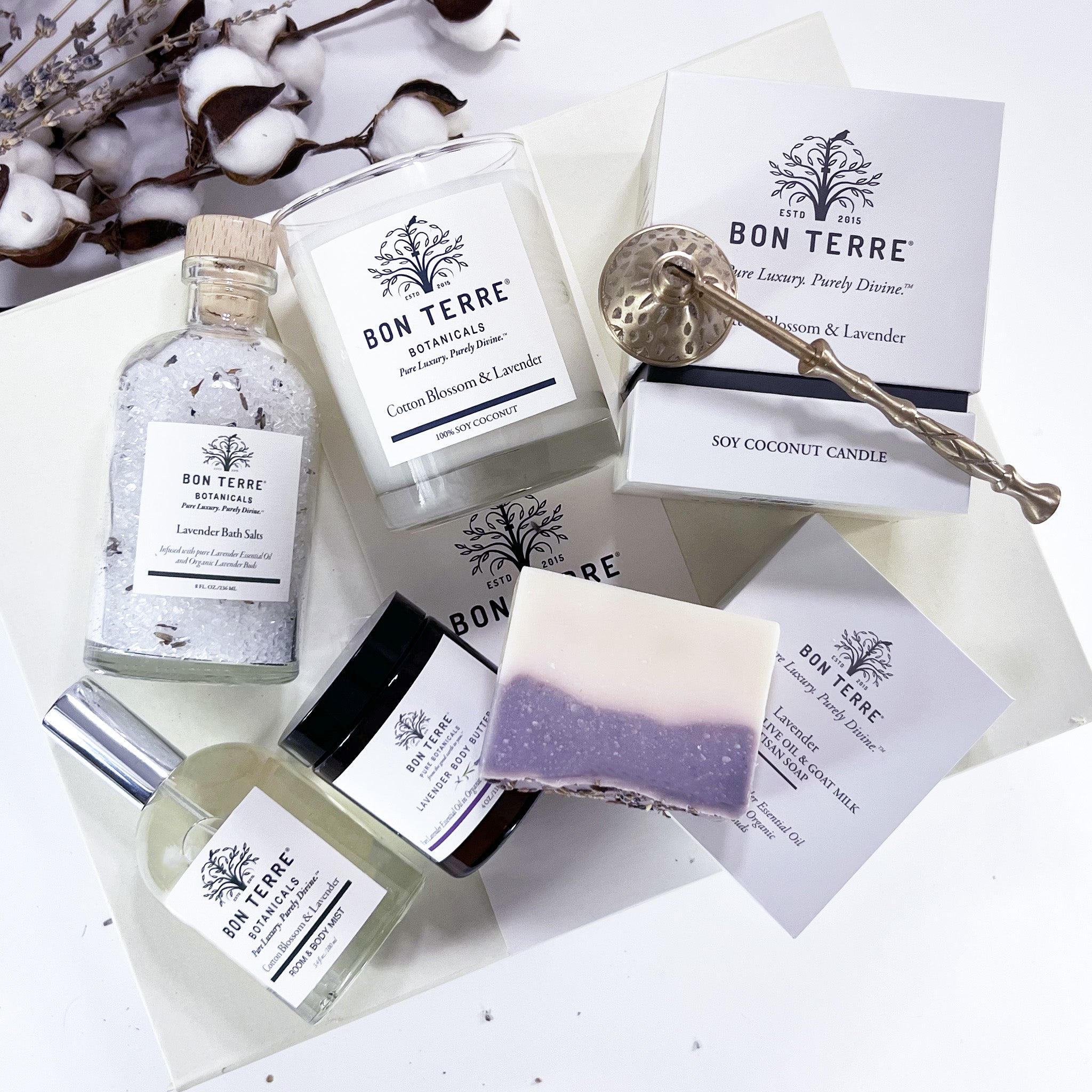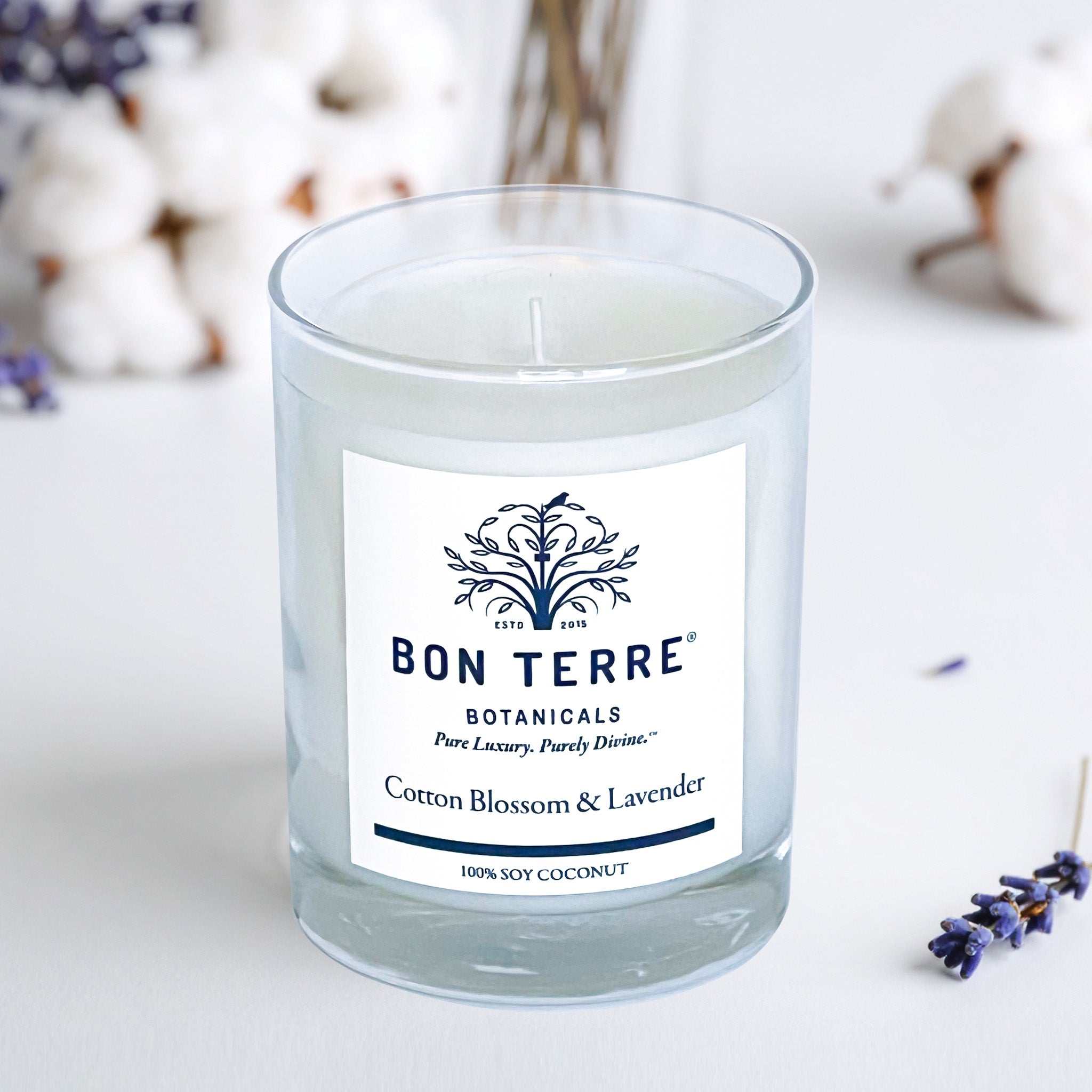 A gorgeous blend of Lavender essential oil and Cotton Blossom fine fragrance in our famous Soy Coconut base. -